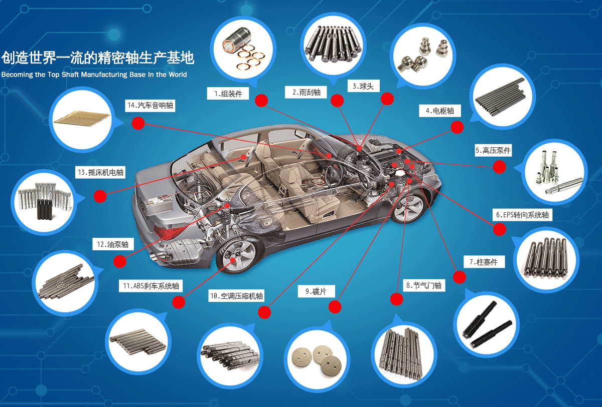 <p>公司着眼于发展、创新，每年均投入大量人力和物力进行新产品研发及技术改造，当前公司产品包括各类汽车轴、精密马达轴、工业零部件等近20个系列千余产品，远销世界各地，深受客户信赖。</p>